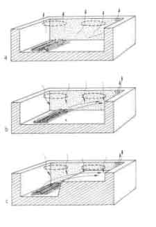 Flow patterns in a stove, together with local velocity profiles, are mainly determined by the flow resistances inside the stove. The driving force for the flow is the draft resulting from the temperature differences between the gases in the stove and the ambient air. In this section we shall be using three generic designs for which a reasonable amount of experimental evidence is available that demonstrate the importance of the concepts discussed in this sections to obtain a desirable performance of the stove.The designs are: