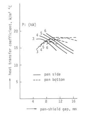the whole range of parameters lie in a narrow range of12.5 to 20 W/m In order to get a total picture we need to look at the heat transfer results which we shall now turn to. The heat transfer to the pan comprises of three distinct parts.